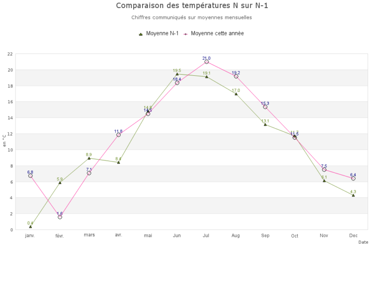 En revanche, nous observons des températures plus élevées de 2°C environ sur les mois de juillet à septembre 2018 comparativement à ceux de 2017.